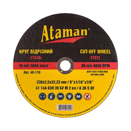 Коло відрізне для металу ATAMAN 41 14А 230 мм (2,0 х 22,23 мм)