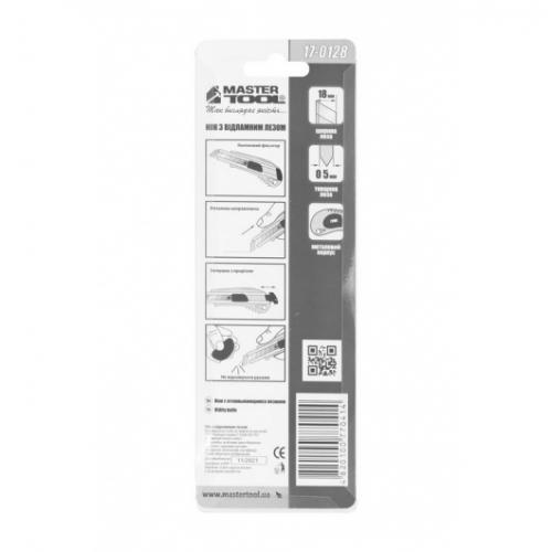 Ніж будівельний MASTERTOOL з відламним лезом 18 мм металевий кнопковий фіксатор 17-0128